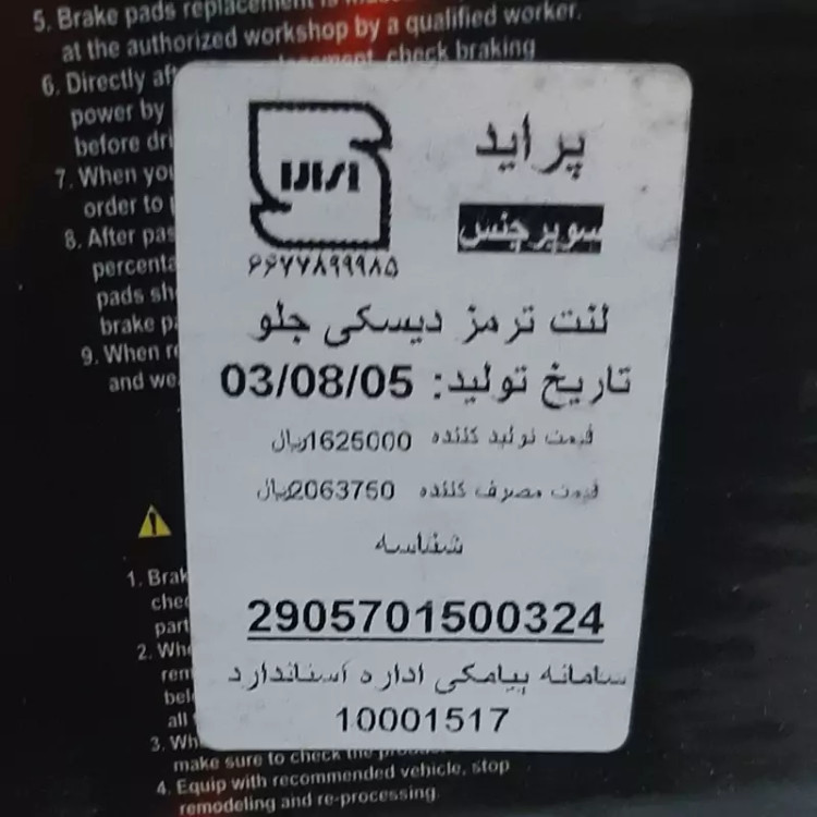 برند سوپر چنس مقاومت بالا کارکرد صحیح ترمز عالی قیمت مناسب شناسه اصالت کالا و تاریخ تولید